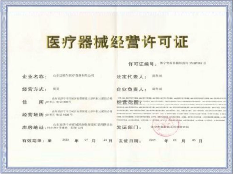 • 医疗器械经营许可证