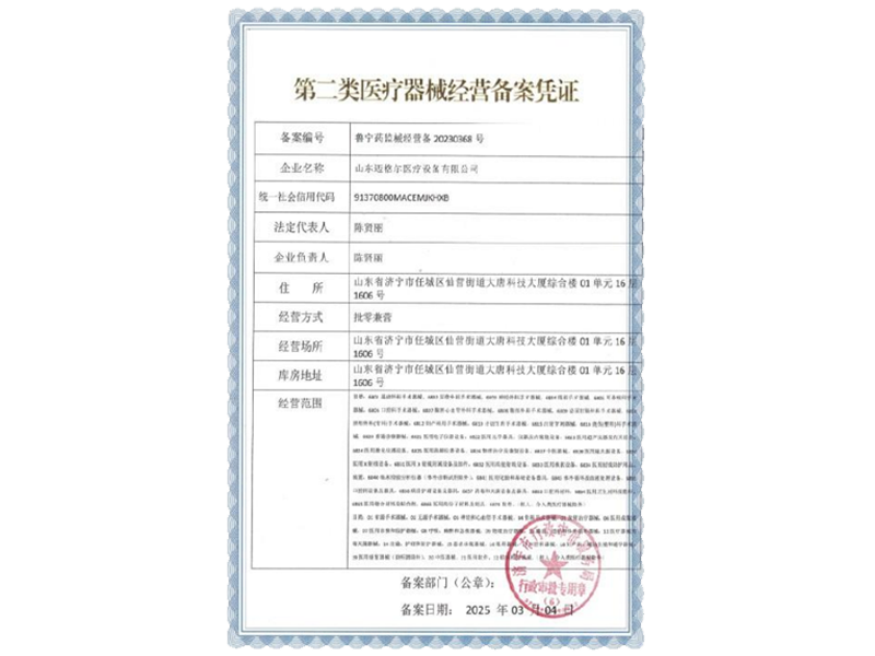 • 第二类医疗器械经营备案凭证